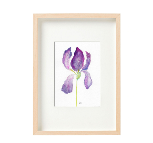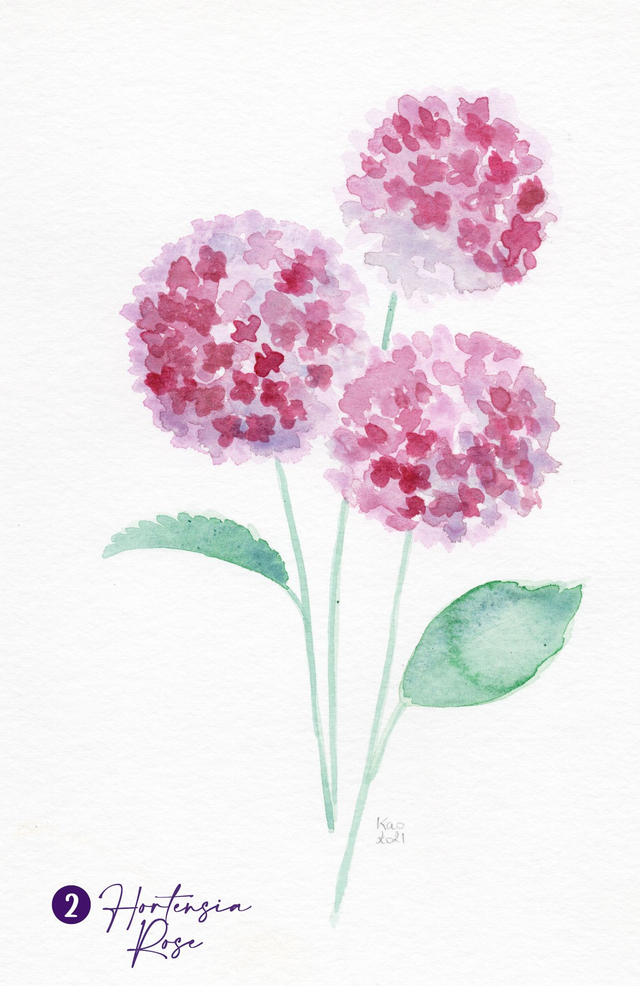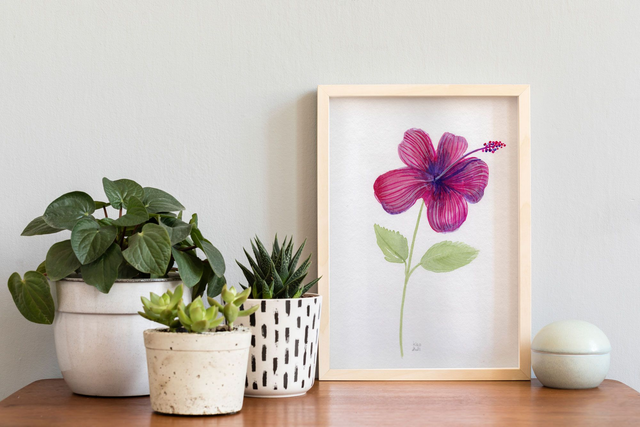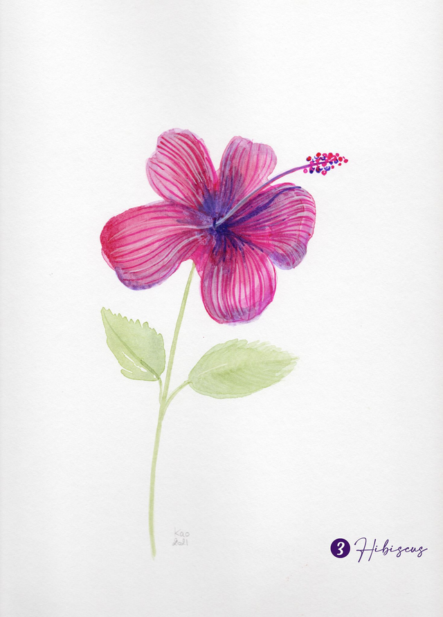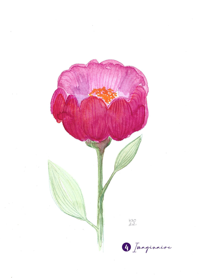 Fleur dans les tons de rose, fuchsia, mauve ou violet réalisée avec de l'aquarelle et des encres sur papier à dessin avec Grin fin 325g/m2